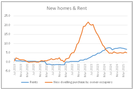 (4) The housing category has a large 22% weighting in the CPI basket. Both house prices and rent costs remain at a high level relative to where they were prior to the pandemic lockdowns. Given the reduction in net migration since 2024 and the pledge by all State governments to support new home construction, we would expect that inflation in the housing category will remain at current levels over the medium term.