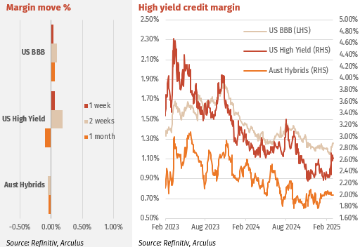 Hybrids rallied over the week mainly driven by many ex-dividend events and the usual partial keeping of franking credits. The average major bank hybrid margin fell by 0.11% over the week to 1.89%, close to 2025 lows in early January. Volumes have kicked higher, the average daily volume at $38m concentrated in all short-term issues as investors continue to move out of short hybrids for alternative yield products. This makes no sense, selling a hybrid with a 2% margin (like long term hybrids) and the benefit of low credit duration during volatile times for a longer dated yield product is a recipe for capital loss should volatility increase (see more below).