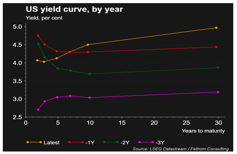 Another way to look at the US bond market is the shape of the yield curves over the past few years: