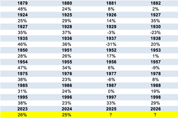 Global equity investors have now enjoyed two stellar years of double-digit returns. From January 2023 to December 2024 the MSCI All Country World Index (AUD) delivered +25.3% p.a., and the S&P/ASX 300 Total Return Index delivered +11.7% p.a. Most investors right now are pinching themselves over these returns and naturally feel uneasy at the prospect of this party (bull market rally) continuing.