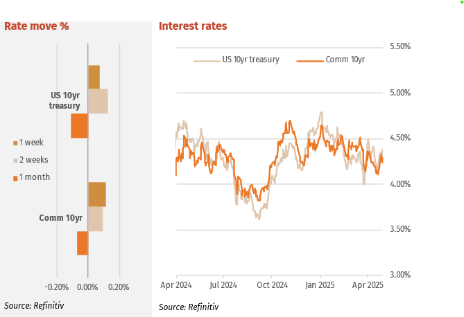 Last week calm returned to markets although there has been no real change in US policy outcomes, yet. We are 30 days into the 90-day pause and constructive developments around trade policy negotiations have been piecemeal and provisional at best. Meanwhile, the US and China have been more restrained insofar as there has been no further escalation in trade measures. Progress towards de-escalation has been minimal, though upcoming talks between officials of the two nations are a positive sign even if we expect that China is only playing for time. China/US trade is currently frozen by the tariffs and yet the markets do not appreciate that with each new day of no change, the risks of disruption to the global supply chain rise. This will impact all the developed world – not just the US or China – because the entire developed world relies on the same global supply chain. This is a simple fact aptly demonstrated by the pandemic lockdowns and yet the equity and credit markets are blind to the consequences.