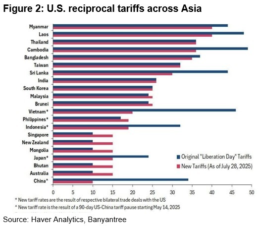 The U.S. continues to make progress on securing new trade deals with trading partners across the globe, with the U.S. recently announcing trade deals with the European Union (EU) and Japan. Along with securing new deals, and therefore reducing some of the uncertainty, many of the recently announced tariffs are lower than what was originally announced on “Liberation Day” in early April.