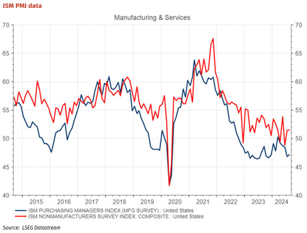 The dreaded ISM PMI results did not move the markets. The PMI manufacturing (47.9 v. 48 expected and PMI services (51.5 v. 51.1 expected) indexes both came in as expected. It appears that the July readings that showed both the services and manufacturing indexes predicting an economic contraction with readings below 50 were, like the non-farm payrolls, distorted by weather events.