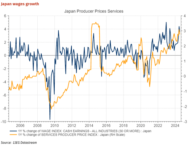 • The BOJ will be forced to increase rates to 1% by the end of the next year because wages growth and services inflation (strong connection) are near 30-year highs.