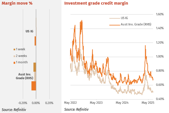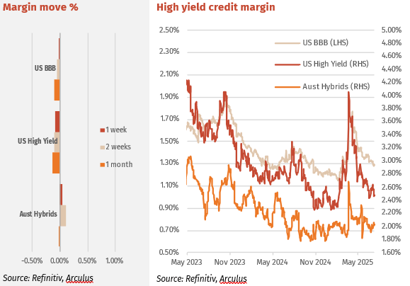 Global High Yield (HY) markets power ahead of benchmarks. Average US high-grade spreads were unchanged at 79bp on Thursday. US high-grade corporate average credit spreads are now unchanged YTD with 2025 YTD volume US$1.003trn vs 2024 YTD volume US$997bn.