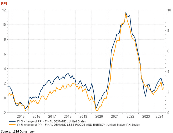 The market ignored the uptick in the PPI in August from 0.1% to 0.2% and the core from -0.2% to +0.3%. The PPI is good leading indicator of the CPI and PCE prices index with a lag that varies due to supply and demand at the retail level. A further move down in the “transitory price” factors seems unlikely from here and so inflation will be driven by wages and service costs.