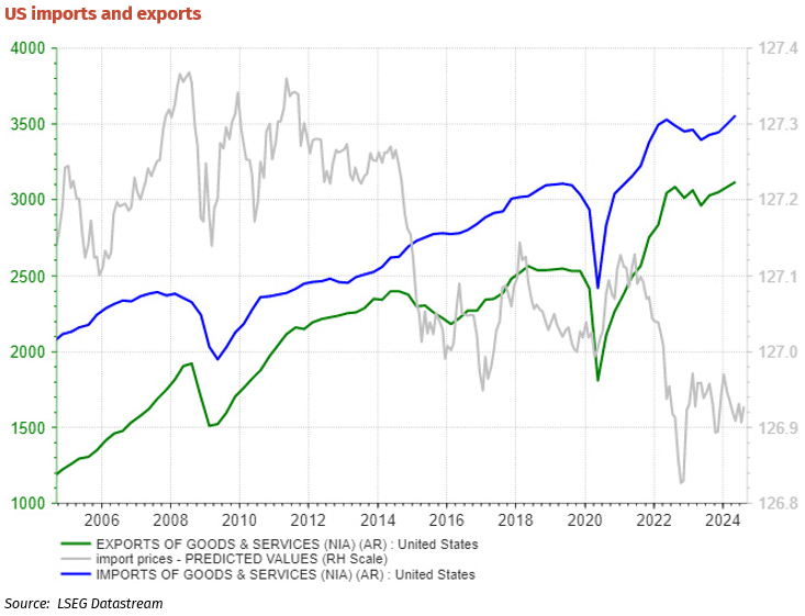 The market saw the slight fall in US import prices as good news for the inflation outlook – and it was. Under a flexible exchange rate regime, the transition mechanism from monetary policy to change the economy is via the exchange rate. The USD has been very strong over the past 18 months and yet we have not seen any change in the difference between the value of exports and imports. We need to see the strong dollar resulting in a rise in imports (because the strong dollar makes them cheaper) and a fall in exports and then factors of production moving from export industries so that the economy contracts. This has not happened yet.